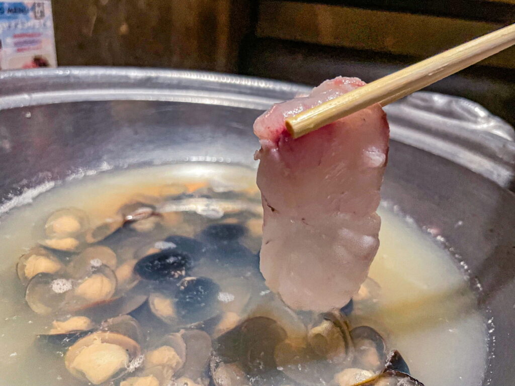 しじみの出汁でしゃぶしゃぶしたヒラメは、しっかりとした弾力が楽しめます!