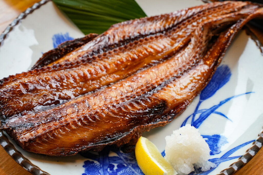 特別な捌き方をしていて、両面とも骨を残すことで、表面はパリッと、中はジューシーな焼き具合になるんだそうです!