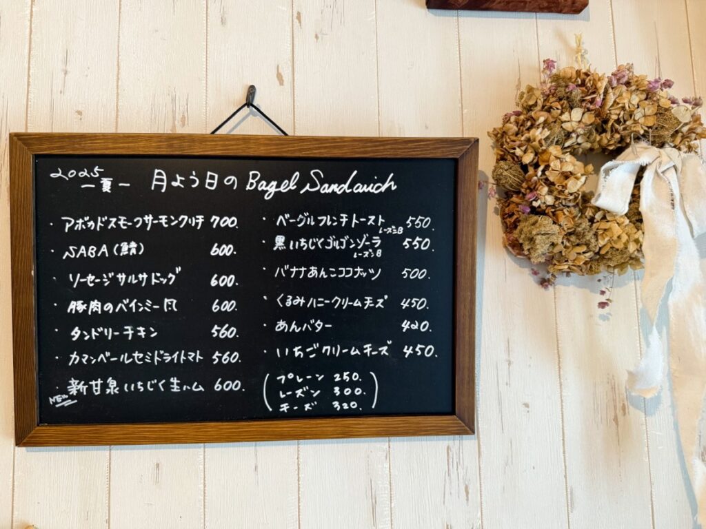 ベーグルサンドのSABA(600円)は魚の油分たっぷりのジューシーな鯖を楽しみつつ、レモンや野菜と一緒に食べることでサッパリといただけます。