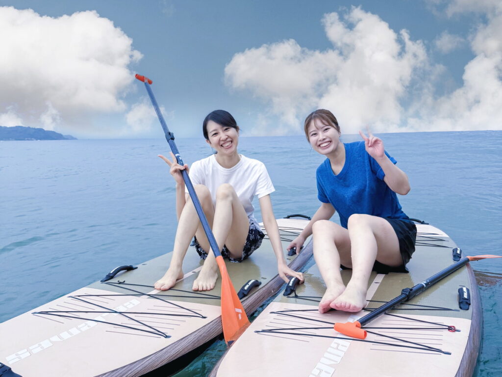 サーフィンやSUPのスクールも行っていて、初心者から参加できます!(SUP体験:所要時間1時間30分、料金1人4400円)
